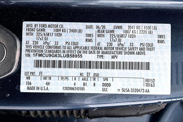 - Vehicle Name: Ford Escape