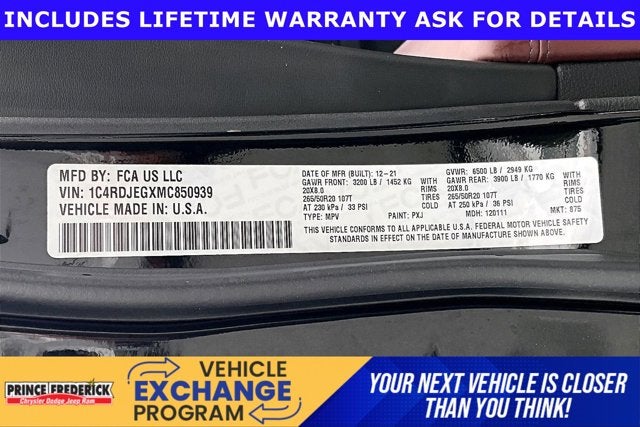 - Rear Tire Size: P265/50TR20