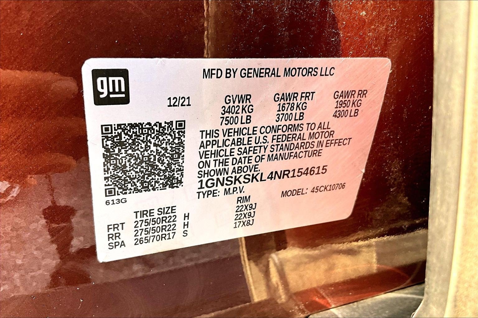 - Front Tire Size: 275/50R22